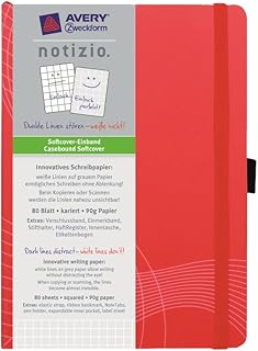 Notizbuch 7019 10,79 € gebunden Softcover A5 notizio. Notizbuch 7029 19,99 € gebunden Hardcover A4 notizio. Notizbuch 7015 8,29 € spiralgebunden Kunststoff (PP) A5 notizio. Notizbuch 7021 15,99 € gebunden Softcover A4 notizio. Notizbuch 7017 12,00 € spiralgebunden Kunststoff (PP) A4 notizio. Notizbuch 7027 15,99 € gebunden Hardcover A5 notizio. With the squared notizio. notebook 7019 from AVERY ZWECKFORM in the DIN A5 format you can concentrate on what's important - your notes. Dark lines distract - white lines don't! The light grey background with white lines is more pleasing to the eye and does not distract. The lines will become almost invisible when copying or scanning!