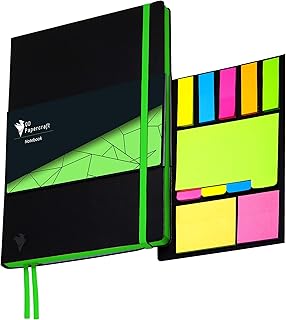 Design Notizbuch QD Papercraft inklusive Haftnotizen, Innentasche und Lesezeichen | Kunstleder Softcover | grün kariert
