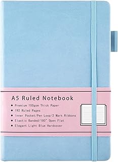 Notizbuch A5, mit Hardcover Ausgekleidetes Journal mit Dickem Premium 100GSM Papier, 192 Seiten, Innentasche, Stiftschlaufe, Gummiband, Kunstlederbezug, 14,5 x 21,3 cm (Blau)