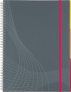 AVERY Zweckform 7015 Notizbuch notizio (A5, Kunststoff-Cover, Doppelspirale, kariert, 90 g/m², 90 Seiten mikroperforiert, Notizblock mit Verschlussband, Registern und Dokumententasche) grau