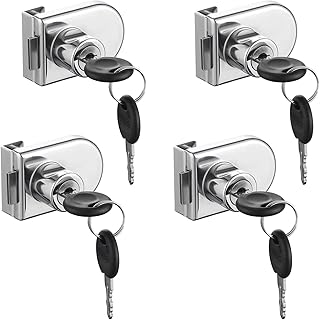 4 Stück Doppelte offene Glastüren Vitrine Sicherheitsschloss, geeignet für 0,2-0,3 Zoll Glastüren, separater Schlüssel ohne Bohren, Zinklegierung (mit 8 Schlüsseln)