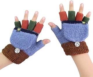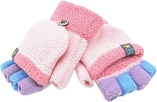 AfinderDE Kinder Fausthandschuhe Mädchen jungen Abnehmbare Klappe Strickhandschuhe Fäustlinge Handschuhe Fingerhandschuhe Fingerlos Halb Handschuhe Strick Handschuhe Winterhandschuhe