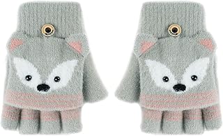 Unisex Kinder Flip Top Winterhandschuh, Cute Cartoon Halbfinger Handschuhe, Warme Stretch Vollfinger Handschuhe, Thermo Fäustlinge Handschuhe für 2–8 Jahre Baby Mädchen Jungen Kleinkind