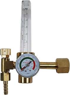 HELO '173518' Druckminderer mit Flowmeter für Argon (und andere Edelgase), Schutzgas und CO2 Flaschen, Eingangsdruck 200 bar mit Flowmeter 0-30 L/Min, Arbeitsdruck ca. 10 bar.