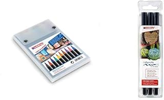 edding 1340 Brush Pen - Fasermaler mit variabler Spitze - 10er Set & edding 1255 Kalligrafie-Stift - Farbe: schwarz 3x - Ideal für Kalligraphie und Lettering auf nahezu allen Oberflächen