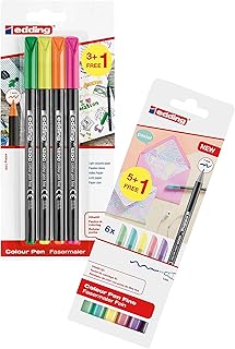 edding Fasermaler edding 1200 colourpen, 1 mm, 4er Pack Neon (+ 6er Pack Pastellfarben)