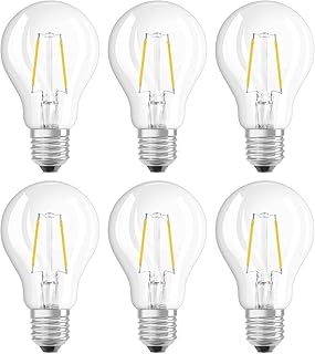 Osram LED Star Classic A Lampe, in Kolbenform mit E27-Sockel, nicht dimmbar, Ersetzt 15 Watt, Filamentstil Klar, Warmweiß - 2700 Kelvin, 6er-Pack