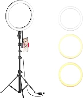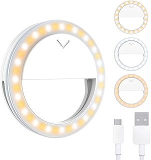 Selfie Light, Selfie Ring Light, Ring Light for Mobile Phone, 40 LED Ring Light with 3 Colours, Adjustable, Rechargeable LED Ring Light for Make-Up, Selfie, YouTube Video and Instagram.