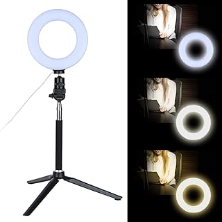 LED Video Ringlicht, 6 Zoll Ringlicht, dimmbar LED Fülllicht mit Ständer für Video Live Kamera Make up, Selfie Live Streaming Videoaufnahme, Beauty Light Beleuchtung Foto licht fotolampe fotolicht