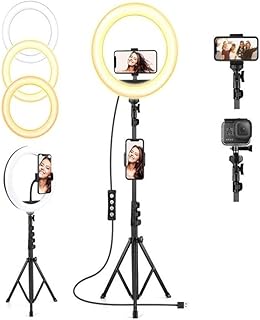 Sporzin LED Ringlicht mit Stativ 59 Zoll, 12 Zoll Selfie Ringleuchte Dimmbar 3 Farbtemperaturen und 10 Helligkeit Einstellen, TikTok Licht Ring Light mit 3 Handyhaltern für Live-Video/YouTube/Make-up