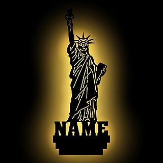 Nachtlicht Deko Lampe Design"USA Freiheitsstatue" Figur mit Name nach Wunsch, Geschenk für USA Fans, als Deko Bild Lampe Wandtattoo