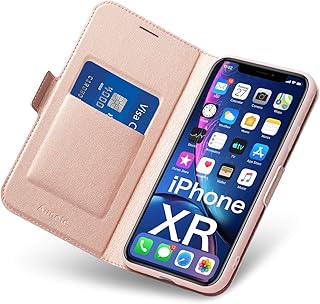 Aunote Hülle iPhone XR, Handyhülle iPhone XR, Schutzhülle iPhone XR, Tasche iPhone XR, Klapphülle iPhone XR, Hülle iPhone 10 XR, Etui Folio, Flip Phone Cover Case, Hülle Apple XR Klappbar. Rosegold
