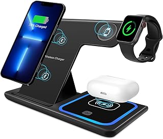Vickey 3 in 1 Apple Ladestation 21.5 W, Ladestation Apple Watch und iPhone Wireless Charger Kompatibel Mit iPhone 13/12 Pro Max/12 Mini/11/X, Watch, AirPods Pro, Samsung S21 Ultra/S20