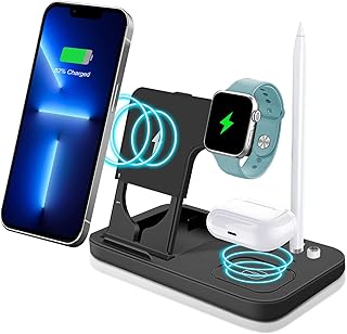 Vickey 4 in 1 Apple Ladestation 21 W, Ladestation Apple Watch und iPhone Wireless Charger Kompatibel Mit 13/12 Pro Max/12 Mini/11/X, Watch, AirPods Pro, Pencil, Samsung S21 Ultra/S20