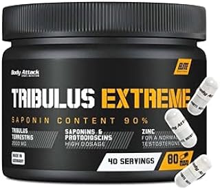 Body Attack-Tribulus Extrakt, hochdosierte Tribulus Terrestris Kapseln, 2000mg Tribulus & 90% Saponine entwickelt für alle Sportler sowie Athleten - Made in Germany- 80 Kapseln