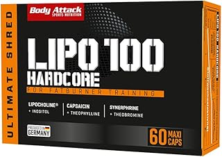 Body Attack Lipo 100 Hardcore – extrem hochdosierte Formel für Diät, fördert den Fett-Stoffwechsel mit Choline, Koffein, Grünes Kaffeebohnen-Extrakt, Synephrin, Made in Germany, 60 Kapseln