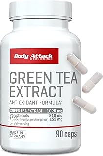 Body Attack-Green Tee Extract, hochdosierte Grün Tee Extrakt Kapseln, 1020mg Grün Tee Extrakt 510mg Polyphenols 153mg EGCG pro Tagesportion, für alle Sportler & Athleten-Made in Germany-90 Kapseln