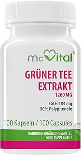 McVital Grüner Tee Extrakt 1260 mg • 90 Kapseln • 189 mg EGCG • 50% Polyphenole • Made in Germany
