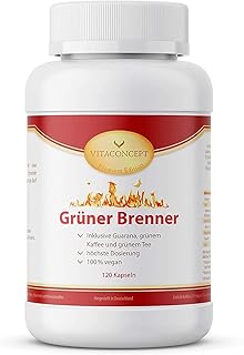 Grüner Brenner Hochdosiert I 120 Kapseln I Guarana, grüne Kaffeebohnen, grüner Tee, schwarzer Pfeffer I Vegan und Laborgeprüft I Entwickelt von Ärzten I Made in Germany von VITACONCEPT