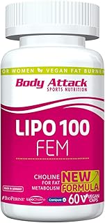 Body Attack Lipo 100 FEM vegan - hochdosierte Formel für figurbewusste Frauen, fördert den Stoffwechsel -Lipocholin, Koffein & Grünen Kaffeebohnen Extrakt, Made in Germany (60 Kapseln)