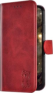 Uposao Kompatibel mit Huawei Y5 2019 Hülle Wallet Handyhülle Leder Hülle Flip Schutzhülle Cool Katze Muster Leder Tasche Brieftasche Klapphülle Bookstyle Case Magnet Kartenfach,Rot