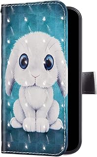 Uposao Kompatibel mit Huawei P Smart 2019 Hülle Leder Handyhülle Flip Schutzhülle Brieftasche Klapphülle Glitzer Glänzend Bling Muster Bookstyle Tasche Case Magnet Kartenfach,Kaninchen