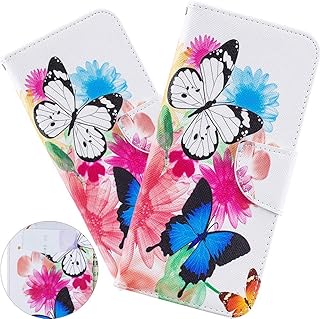 Uposao Kompatibel mit Huawei Y5 2019 Handyhülle Leder Hülle Flip Schutzhülle Handytasche Retro Bunt Muster Brieftasche Klapphülle Wallet Case Magnet Kartenfach,Schmetterling