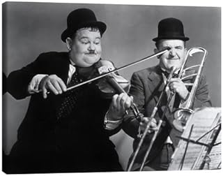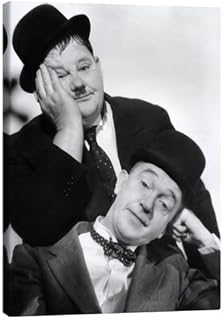 Posterlounge Laurel und Hardy Leinwandbild Wandbilder für jeden Raum 90 x 70 cm Schwarz-Weiß Dick und Doof Wanddeko