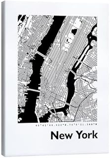 Posterlounge Stadtplan von New York Leinwandbild von 44spaces Wandbilder für jeden Raum 50 x 70 cm Schwarz-Weiß Städte Wanddeko