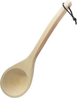 Weigand Saunakelle LÖYLY Klassik - ca. 40 cm lang mit Lederriemen I aus feinem Espenholz I Sauna I Kelle I Löffel I Schöpflöffel I Schöpfkelle I Saunazubehör I Zubehör I Saunalöffel I Weigand Wellness