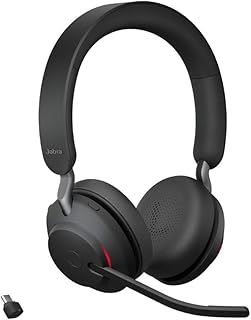 Jabra Evolve2 65 Wireless PC Headset – Noise Cancelling UC Zertifizierte Stereo Kopfhörer mit langer Akkulaufzeit – USB-C Bluetooth Adapter – Schwarz