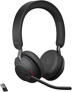 Jabra Evolve2 65 Wireless PC Headset – Noise Cancelling UC Zertifizierte Stereo Kopfhörer mit langer Akkulaufzeit – USB-A Bluetooth Adapter – Schwarz