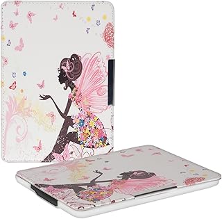 kwmobile Klapphülle kompatibel mit Amazon Kindle Paperwhite - Hülle eReader (für Modelle bis 2017) - Fee Mädchen Mehrfarbig Pink Weiß