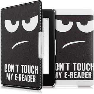 kwmobile Klapphülle kompatibel mit Amazon Kindle Paperwhite - Hülle eReader (für Modelle bis 2017) - Don't Touch My E-Reader Weiß Schwarz