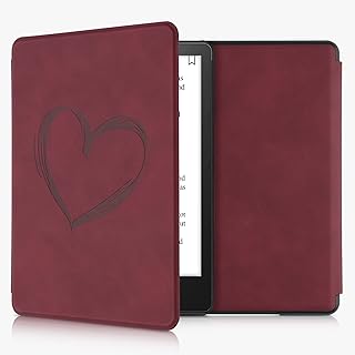 kwmobile Schutzhülle kompatibel mit Amazon Kindle Paperwhite (11. Gen - 2021) - Hülle Kunstleder eReader - Herz Brush Dunkelrot