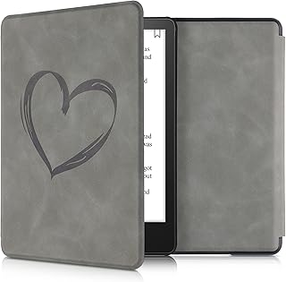 kwmobile Schutzhülle kompatibel mit Amazon Kindle Paperwhite (11. Gen - 2021) - Hülle Kunstleder eReader - Herz Brush Grau