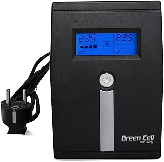 Green Cell UPS USV 1000VA 600W Unterbrechungsfreie Stromversorgung mit LCD Display und Überspannungsschutz 230V. Die Green Cell USV-Notstromversorgung bietet vollständigen Schutz für alle angeschlossenen Geräte bei Stromausfall und Stromspitzen. Damit können Sie Ihre Arbeit sicher speichern und das Gerät sicher abschalten. Eine Unterbrechungsfreie Stromversorgung (USV) ist ein Gerät, dessen Zweck es ist, Strom zu liefern, wenn unserer Wohnung oder unserem Arbeitsplatz der Strom ausgeht. Ein plötzlicher Stromausfall kann nicht nur den Verlust wichtiger Daten, sondern auch Schäden an elektronischen Geräten verursachen. Der Notstromversorgung ermoglicht uns, die Auswirkungen unserer Arbeit zu sparen und das Gerät sicher abzuschalten. Dank der eingebauten Batterien kann das Netzteil die Rolle einer Steckdose