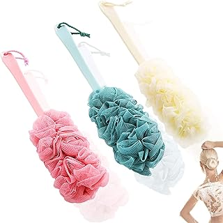 3 Pieces Shower Sponge with Long Handle, Bath Brush with Long Handle, Mesh Shower Sponge, for Shower Perfect for Relaxing Muscles for Men and Women