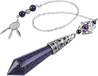 KYEYGWO Blau Sand Stein Sechseckiger Edelstein Pendel mit Traumfänger und Davidstern Kette, Kristall Punkt Anhänger Vintage Hexagonal-Pendel für Reiki Heilung Dowsing Hypnose Glücksbringer