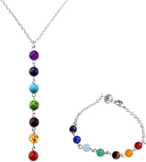 Schmuck-Sets,Damen 7 Stein Edelstein Bead Chakra Reiki Heiling Armband + Halskette Therapie Y-Kette Schmuck Set