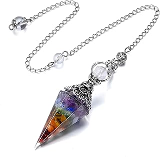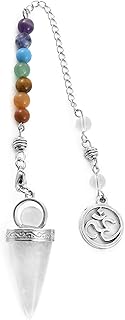 GEHECRST Schmuck Edelstein Pendel 7 Chakra Steine Pendulum Pendel Anhänger mit Kette für Reiki Heilung Dowsing Scrying Balance Armband (Weißer Kristall)