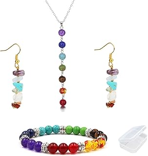 4 Stück Damen 7 Stein Chakra Reiki-Energietherapie Armband Ohrringe Halskette Y-Kette Schmuck-Set Geschenk