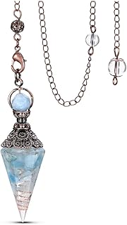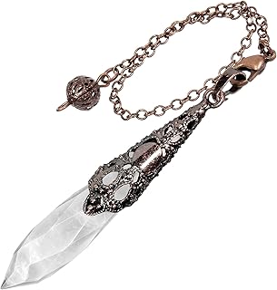 Amogeeli Bergkristall Stein Pendel Kristall Anhänger mit Kette, Vintage Heilstein Point Divination Pendel für Dowsing Scrying, Meditation, Reiki Heilung