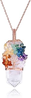 JSDDE 7 Chakra Lebensbaum Anhänger Kette aus Natürliche Edelsteine Wire Wrap Kristallsäule Hexagon Anhänger Halskette Glücksbringer Energietherapie Reiki Freundschaftskette