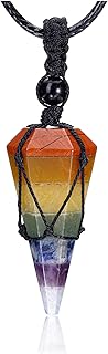 Jovivi 7 Chakra Hexagon Spitze Edelstein Anhänger Kette Healing Reiki Energiestein Naturstein Pendant Halskette Glückskette