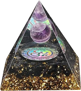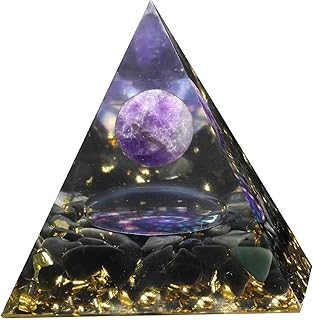 KYEYGWO Positive Energie Pyramiden Stein mit Reiki Heilung Amethyst Kristall Kugel und Ammonit Fossilen Symbol, Chakra Kristallpyramide Obsidian Edelstein Pyramide Desktop Ornament Haus Dekoration