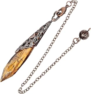 KYEYGWO Tigerauge Reiki Heilung Stein Pendel mit Vintage Kette, Kristall Punkt Anhänger Halskette für Damen und Herren, Edelstein Quartz Pendels für Divination Meditation Scrying Balance