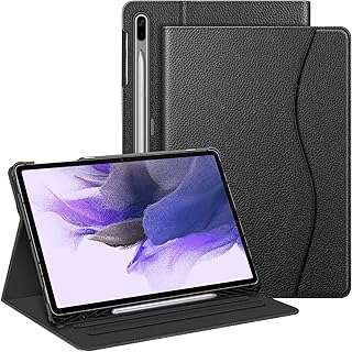 Fintie Hülle für Samsung Galaxy Tab S7 FE 2021/S7 Plus 2020 12.4 Zoll, Multi-Winkel Folio Schutzhülle mit S Pen Halter Dokumentschlitze und Auto Schlaf/Wach Funktion, Schwarz