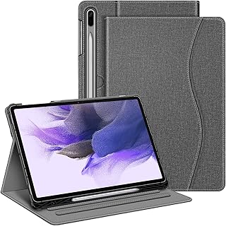 Fintie Hülle für Samsung Galaxy Tab S7 FE 2021/S7 Plus 2020 12.4 Zoll, Multi-Winkel Folio Schutzhülle mit S Pen Halter Dokumentschlitze und Auto Schlaf/Wach Funktion, Dunkelgrau