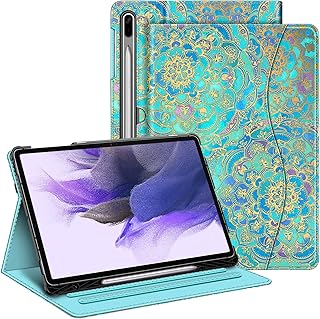 Fintie Hülle für Samsung Galaxy Tab S7 FE 2021/S7 Plus 2020 12.4 Zoll, Multi-Winkel Folio Schutzhülle mit S Pen Halter Dokumentschlitze und Auto Schlaf/Wach Funktion, Türkis